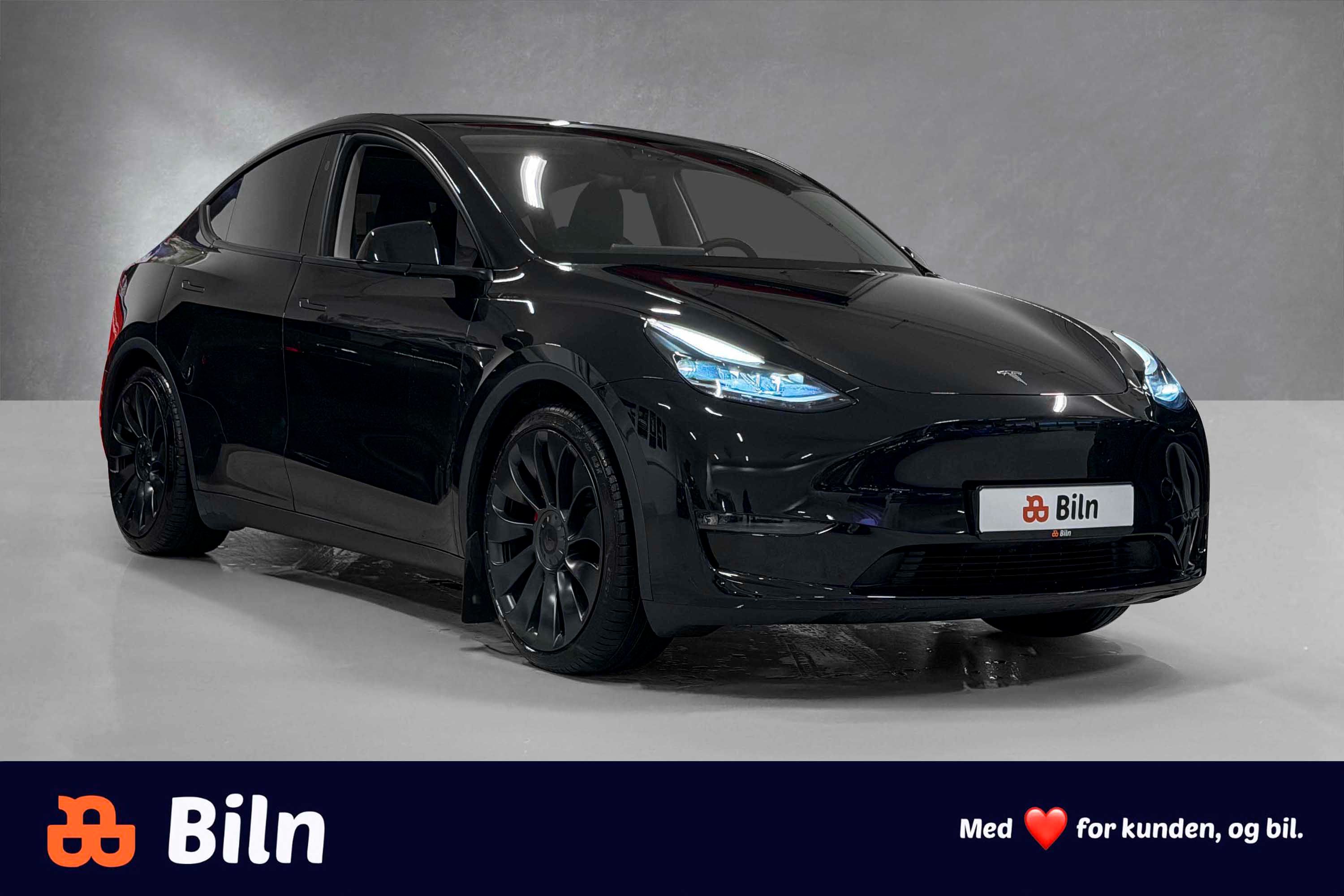 Helrå og smått brutal 2024 Tesla Model Y Performance med lav km stand presenteres av Biln!